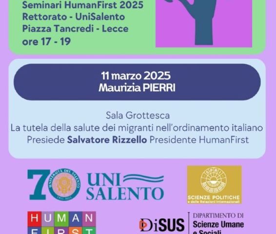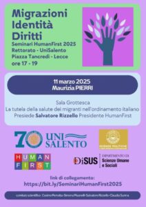 L’11 marzo 2025, alle h. 17.00, la prof.ssa Maurizia Pierri terrà un seminario su La tutela della salute dei migranti nell’ordinamento italiano. Il seminario si terrà presso la sala “Grottesca” del Rettorato – Università del Salento, in Piazza Tancredi, Lecce.