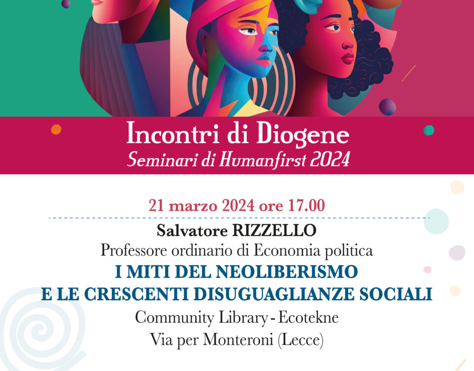 3 Maggio 2024Published by HumanFirstItalia at 3 Maggio 2024Categories incontri di diogeneI miti del neoliberismo e le crescenti disuguaglianze socialiNel seminario I miti del neoliberismo e le crescenti disuguaglianze sociali, Salvatore Rizzello (professore ordinario di Economia politica)